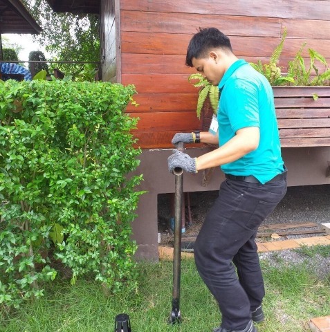 - ฝังสถานีป้องกันปลวก ในพื้นดินบริเวณรอบตัวบ้าน In-ground station